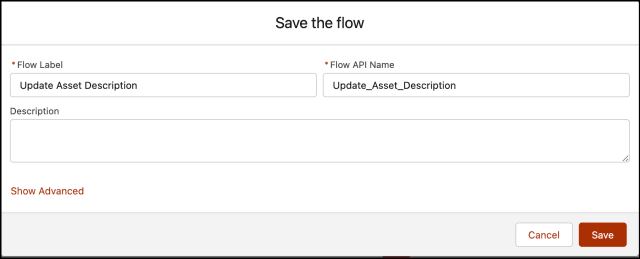 - Etiqueta de entrevista : Actualizar descripción de activo {!$Flow.CurrentDateTime}