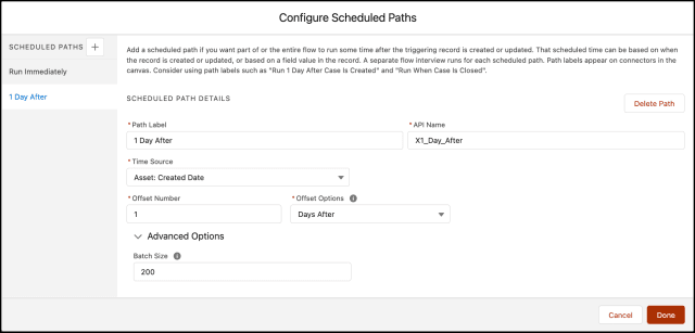 Paso 2: Flujo de Salesforce: agregue rutas programadas