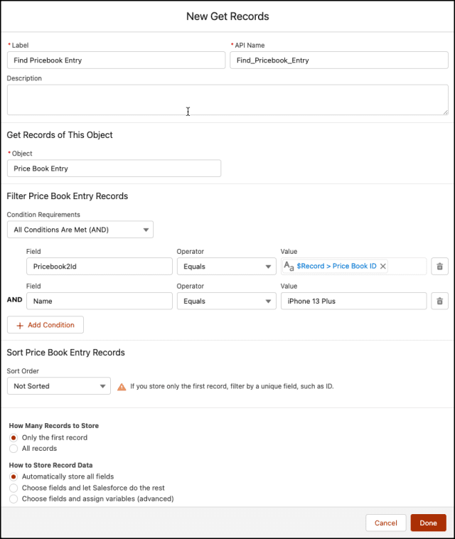 - Recurso: {!Find_Pricebook_Entry}