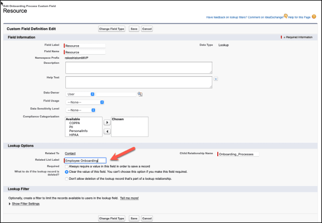 Jestilla Zetkin trabaja como administradora de sistemas en Gurukul On Cloud (GoC) . Ella recibió un requerimiento de su Gerente de Ventas para cambiar el nombre de la lista relacionada de Procesos de Incorporación en el contacto a Incorporación de Empleados.