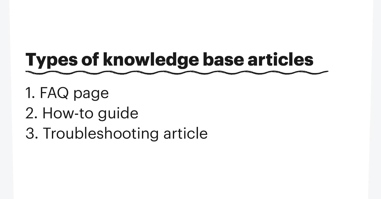 En general, los artículos de la base de conocimientos se pueden dividir en tres tipos principales. Al planificar el contenido, es útil comprender cada tipo diferente y cómo sus lectores digerirán la información.
