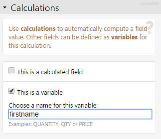 En esta captura de pantalla, puede ver que en el paso Cálculos, el campo ‘Nombre’ ya está configurado como una variable disponible. Esto implica que la configuración es correcta y que no se le pedirá a su donante que ingrese su nombre más de una vez.