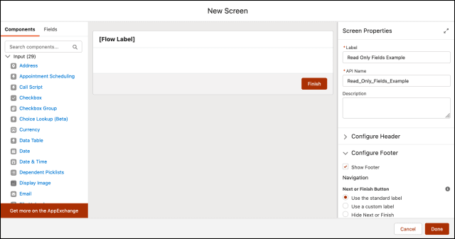 Los estados de solo lectura se aplican a los componentes cuando el usuario puede revisar pero no modificar el valor. Salesforce Flow tiene una función nativa para mostrar textos en formato de solo lectura, pero a veces no es suficiente para el diseño de UI/UX.