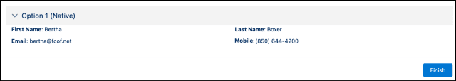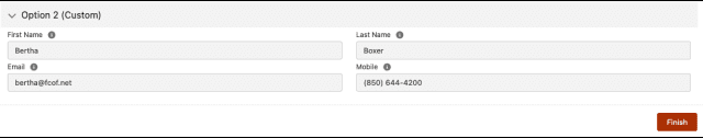 A partir de ahora, cuando un usuario comercial ejecute el flujo de pantalla, se mostrará automáticamente la información del usuario que inició sesión en formato de solo lectura.