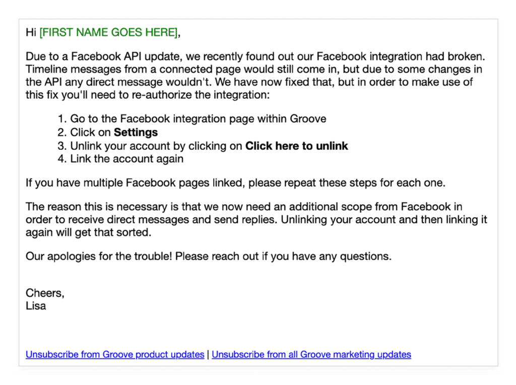 Cómo configurar su correo electrónico de disculpa a los clientes en Groove y ConvertKit