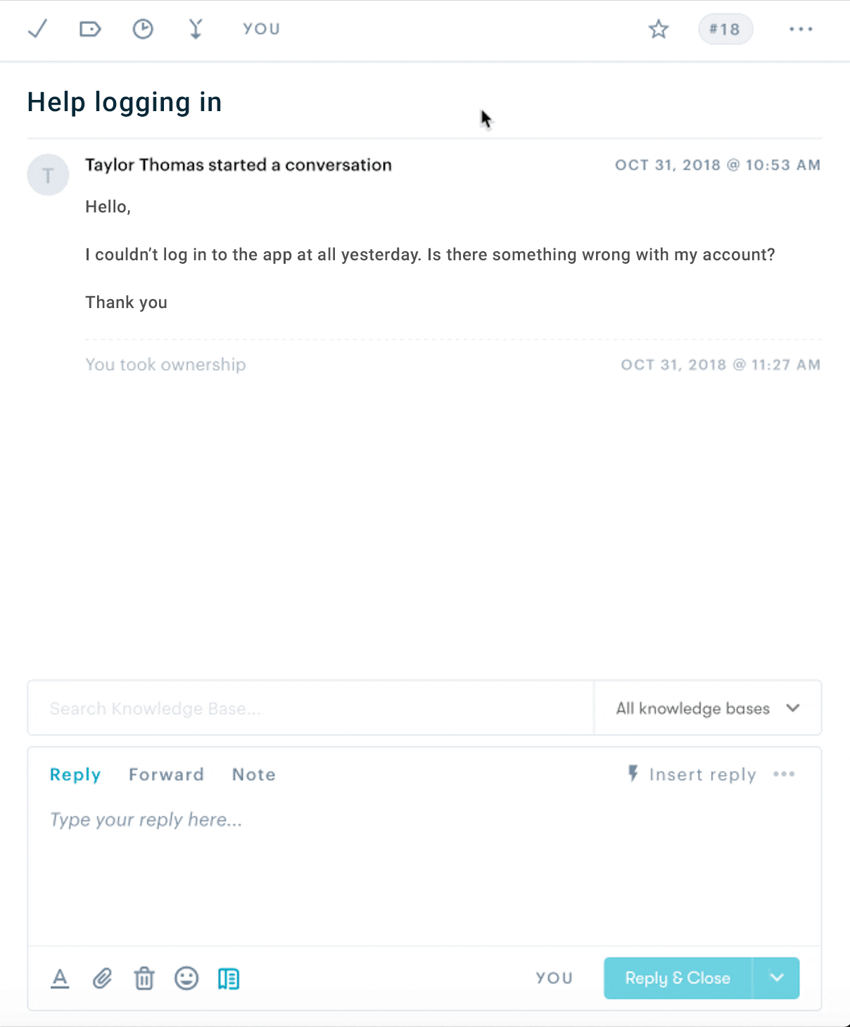 Si tiene una base de conocimientos (y si no la tiene, ¡ consiga una con Groove !), Puede escribir un desglose completo del incidente y vincularlo desde el correo electrónico. O puede vincular a ciertos artículos que explican cómo realizar los siguientes pasos necesarios (como cerrar sesión / iniciar sesión o actualizar un carrito).