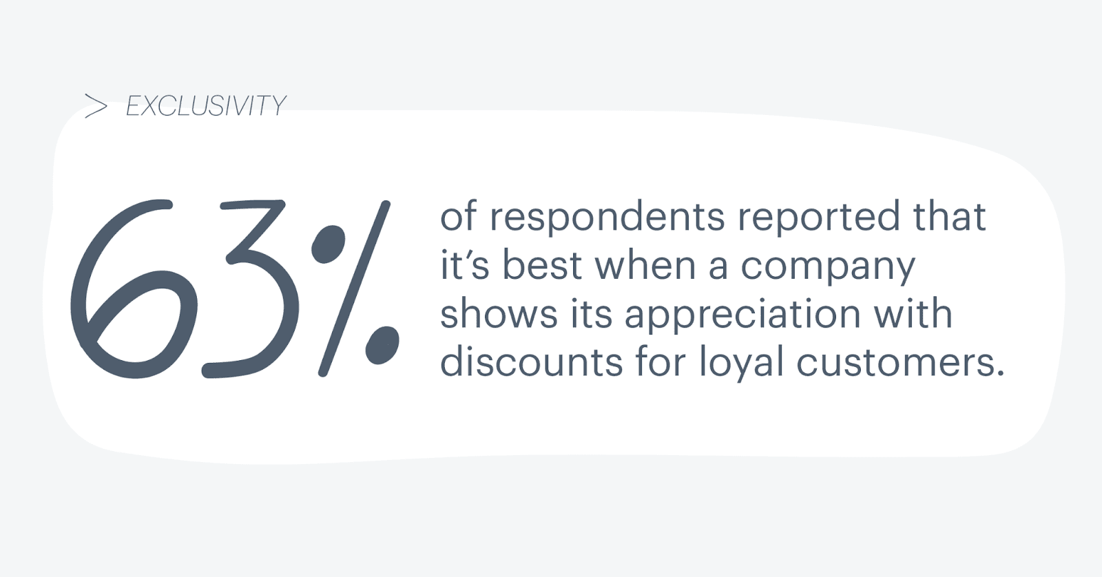Exclusividad. El 63% de los encuestados informó que es mejor cuando una empresa muestra su agradecimiento con descuentos para clientes leales. Eso se parece mucho a la primera respuesta. Pero aquí está la diferencia: clientes leales . Sus clientes leales quieren esa sensación de exclusividad. Así que considere no solo ofrecer precios más bajos con un descuento especial del Día de agradecimiento al cliente. Ve más allá de eso. Piense en cómo puede llegar a un grupo exclusivo de clientes, por ejemplo, aquellos que están suscritos a su boletín informativo, con ofertas solo para ellos.