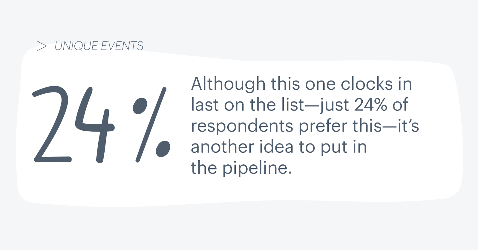Eventos únicos. Aunque este es el último en la lista, solo el 24% de los encuestados lo prefieren, es otra idea para poner en marcha. Seminarios web, eventos en vivo, eventos de networking: todo es una nueva forma de generar entusiasmo por estar asociado con su marca.