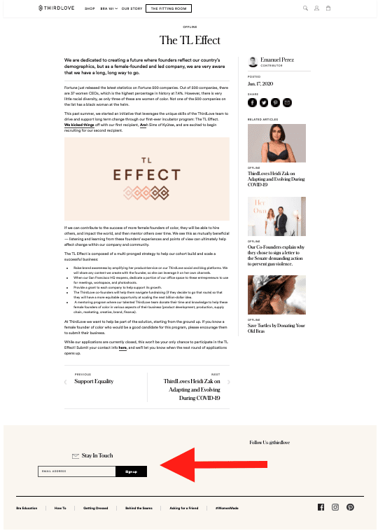 Un consejo para el éxito del cliente es incluir un aviso que aliente a los lectores a proporcionar sus direcciones de correo electrónico en cada publicación para que pueda hacer un seguimiento con ellos.