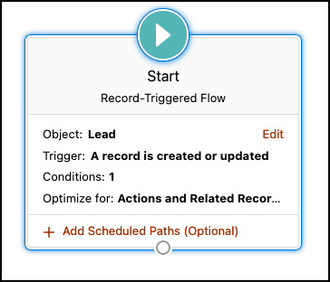 - Etiqueta de la entrevista : Activador de registro: Cliente potencial después de guardar {! $ Flow.CurrentDateTime}