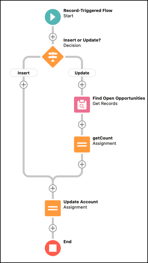 - Reducción de la complejidad : es menos probable que alcance los límites, como la cantidad de consultas SOQL. Adherirse a la regla de un flujo por objeto también le permitirá evitar generar bucles infinitos.