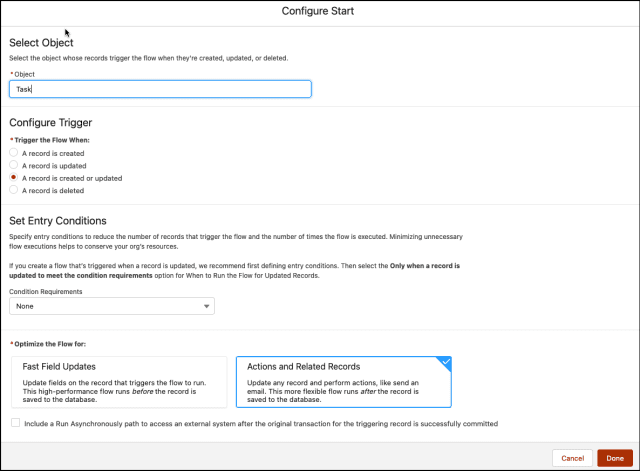 Un Flujo de Salesforce tomará medidas automáticamente cuando un registro cumpla con los criterios especificados. Tiene una gran capacidad para enviar notificaciones por correo electrónico a muchos objetos diferentes . Esto le permitirá notificar a una persona o grupos de personas vía correo electrónico siempre que cumpla con la evaluación y cumpla con las condiciones especificadas.