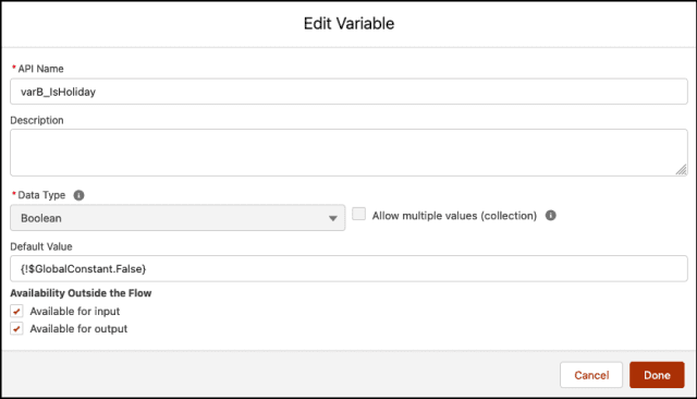 - Valor: {!varB_IsHoliday}