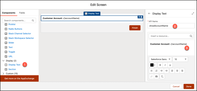 - Cree un ScreenFlow (customerFlow) para manejar la solicitud del cliente