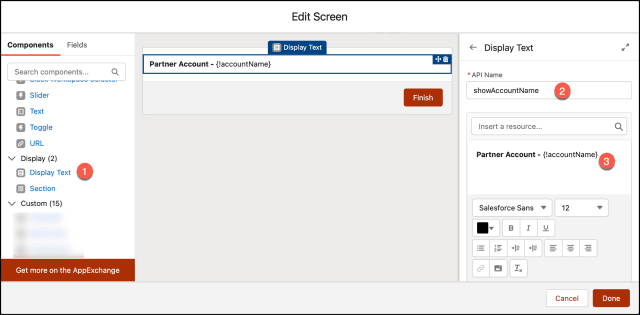 - Cree un ScreenFlow (partnerFlow) para manejar la solicitud del cliente