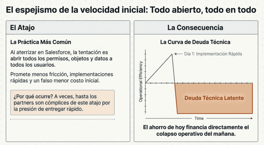 Implementar Salesforce es un hito para cualquier organización. Pero en el apuro por salir rápido y gastar poco, muchas empresas caen en una trampa técnica que, tarde o temprano, les pasa una factura enorme.