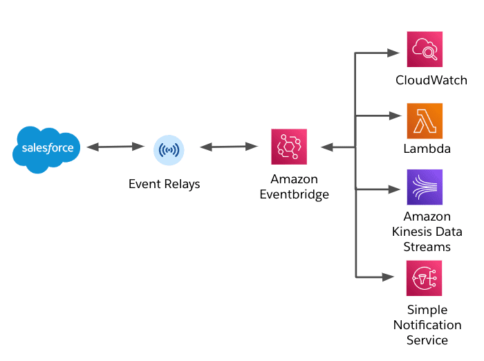 Por otro lado, sabemos que las decisiones comerciales pueden optar por capacidades existentes sobre nuevas capacidades. Si un cliente de Salesforce tiene flujos de trabajo integrados con los servicios de AWS, el uso de Event Relays for AWS para activar esos flujos de trabajo desde Salesforce significa que no tiene que gastar valiosos recursos de desarrollador en la creación de middleware o integraciones personalizadas.